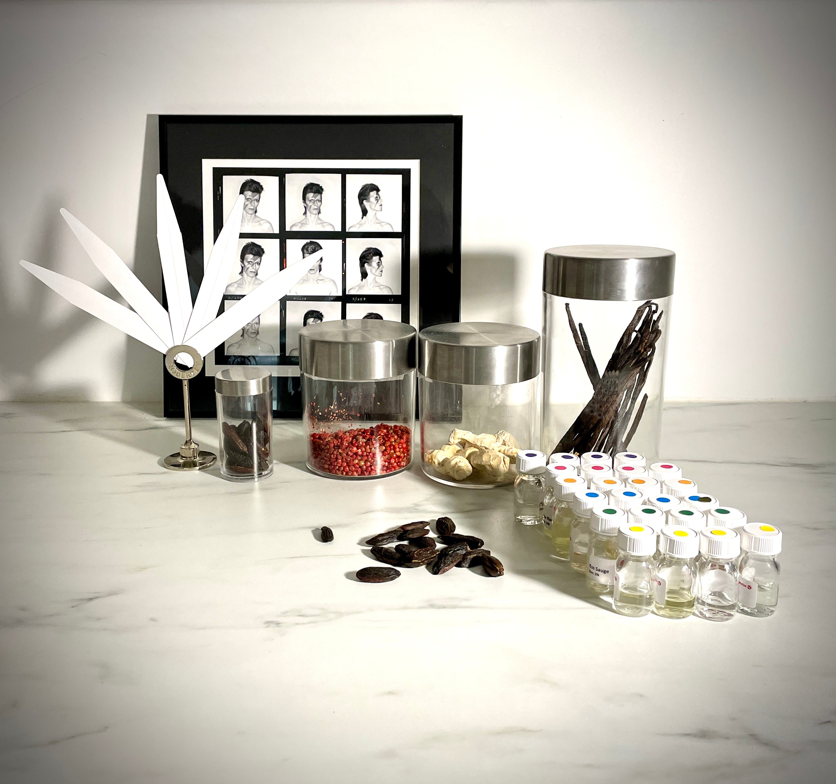 - Exercez votre nez à l’aveugle : découvrez et comparez des matières premières naturelles et synthétiques, sans connaître leur nom, pour développer votre mémoire olfactive.